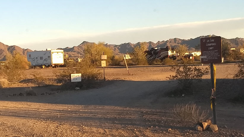 We opted to stay in the Scadden Wash area as it was very close to town and the Verizon cell signal was excellent. We found the Dome Rock area to be much more scenic and less populated, but the 4G cell signal was not nearly as strong. Our coordinates and a map to our exact location in Scadden Wash is shown below.