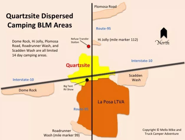 After attending the 2019 Xscapers Bash in Lake Havasu City, Arizona, we made our way down to Quartzsite, Arizona to do some boondocking and attend the Big Tent Show. We already chronicled The Good and The Bad of the show in a pair of previous blog posts. This post will strictly be about our experience boondocking, and the town of Quartzsite.