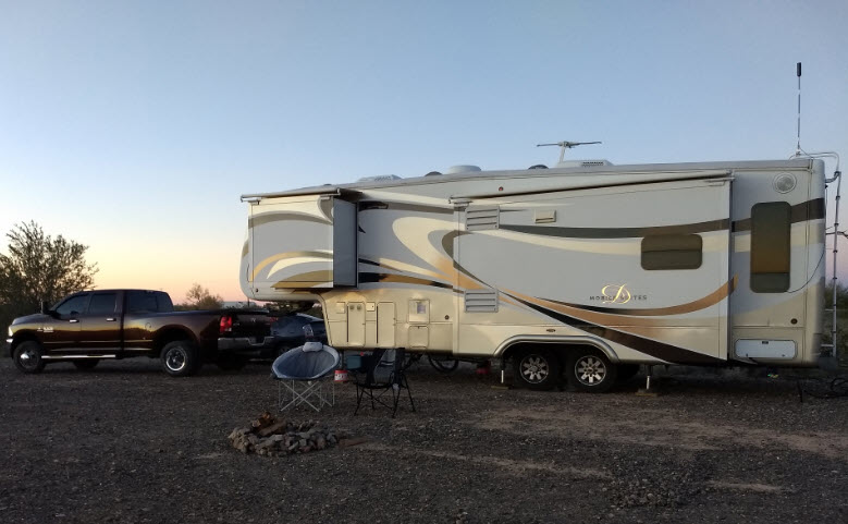 When we pulled into our site, we noticed there were many more RV’s than we anticipated. After speaking to the neighbors, we were told everyone was in town to attend the Big Tent show. Before leaving Lake Havasu, we dumped our tanks and made sure our fresh water tank was topped off. We plan on boondocking for at least a week and nobody wants to run out of water or cope with a full black tank.