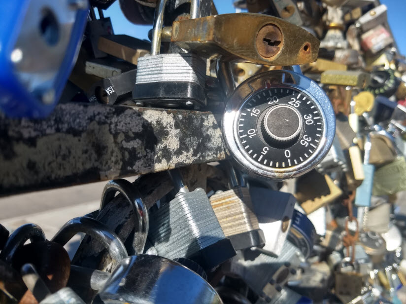 Paddlocks are placed by couples to symbolize their unbreakable bond.  The tradition of placing the locks started in London, but has also migrated to the states.  Couples place the locks and throw away the key.
