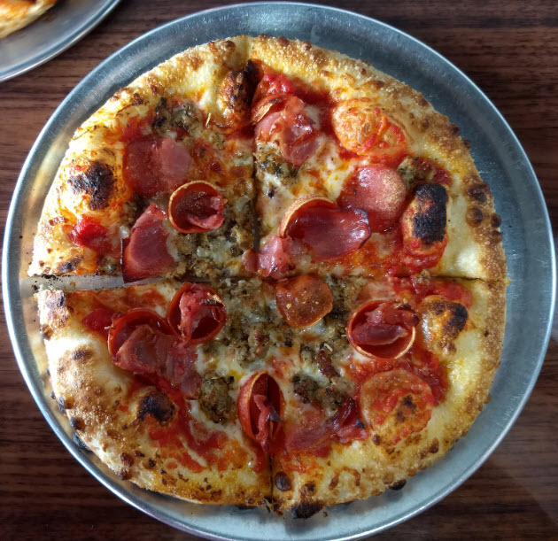 The pizzas are wood fired and only take 90 seconds to bake.  RaeLynn went with the standard pepperoni, while Buck went with the italian sausage, peperoni, and prosciutto.