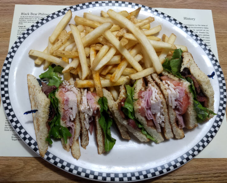 Buck decided to go with the Turkey Club (Triple-decker stacked with roasted turkey breast, thick-cut smoked bacon, smoked ham, tomato, lettuce, mayonnaise on sourdough), while RaeLynn went with the traditional Mac & Cheese with French Fries.