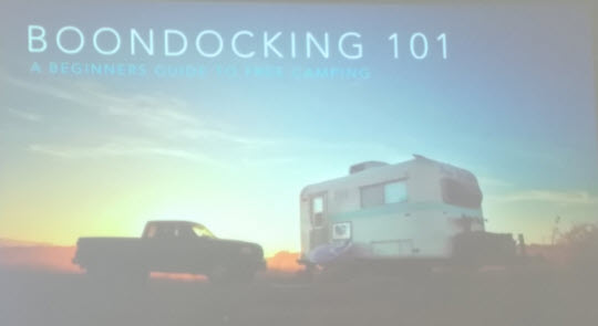 We were very excited to attend a presentation on Boondocking given by the one and only Kyle and Olivia of Drivin’ and Vibin’. Kyle and Olivia are two very successful hard working individuals in the full-time RV community. They Boondock almost exclusively, and we felt their tips would be invaluable. They currently live in a 16 foot vintage Fiber Stream, and are in the process of restoring and renovating a 1979 Argosy Airstream.